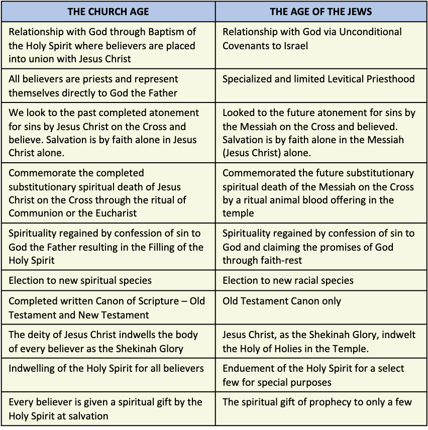 There are many differences between the Church Age and the Age of the Jews or the Age of Israel.