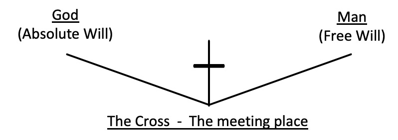 God has absolute will and does whatever He pleases. He makes decisions, policies and sets up principles. This is divine volition. In His sovereignty, He was pleased to give man free will. The meeting place between man and God is the Cross. Psalms 115:3.