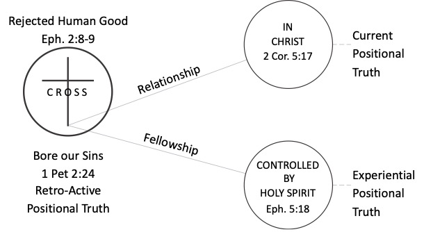 The basis of faith-rest is Positional Truth – the top circle of the illustration below. All Church Age believers are placed into union with Jesus Christ by God the Holy Spirit at salvation (Baptism of the Holy Spirit). This is permanent. The function of faith-rest is whenever the believer is filled with the Holy Spirit and therefore, in fellowship with God – the bottom circle. This can only be achieved by confessions of known sins to God the Father using 1 John 1:9. Rom. 8:1; Rom. 14:23.