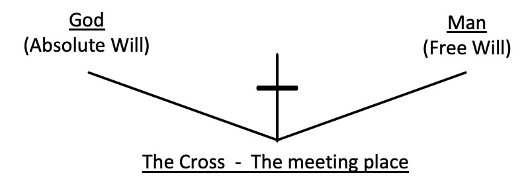 God has absolute will and does whatever He pleases. He makes decisions, policies and sets up principles. This is divine volition. In His sovereignty, He was pleased to give man free will. The meeting place between man and God is the Cross. Psalms 115:3.